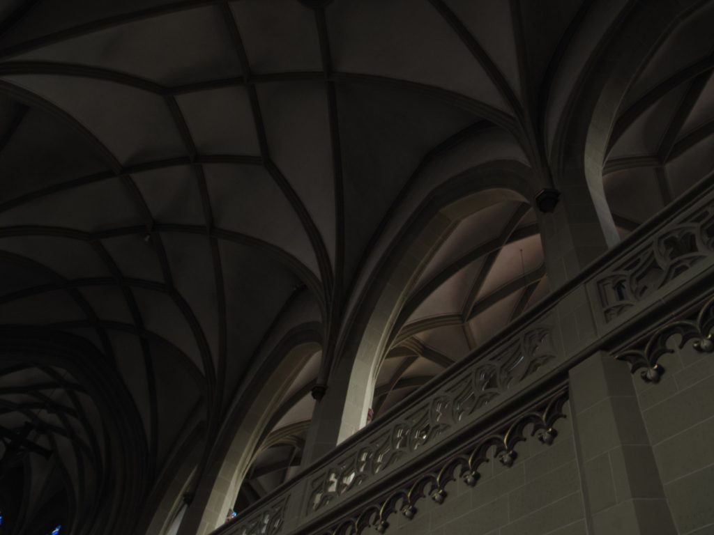 11 Uhr in Schweinfurt. Die Sonne hat es geschafft, ich musste schon die kurze Hose anziehen! Der Main liegt ruhig da (wegen der Schleusen gibt es kaum Strömung), bisher ist mir noch kein Schiff begegnet. Sehr gelohnt hat sich der Besuch der Ritterkapelle in Haßfurt, zum einen wegen des schönen spätgotischen Stils, zum anderen weil ich mal wieder meine Vorurteile um die Ohren gehauen bekam: Die „konservativ-katholischen Bayern“ hatten in der Kirche eine sehr gute Ausstellung zum Thema häusliche Gewalt gegen Frauen, eine Besucherin, mit der ich ins Gespräch kam, lobte den aufgeschlossenen Pfarrer. Die Leute sind auch freundlich gegenüber Fahrradfahrern, schon zweimal haben Autofahrerinnen extra angehalten, um mich links abbiegen zu lassen (oder hab ich nur wieder mal besonders hilflos ausgesehen?).