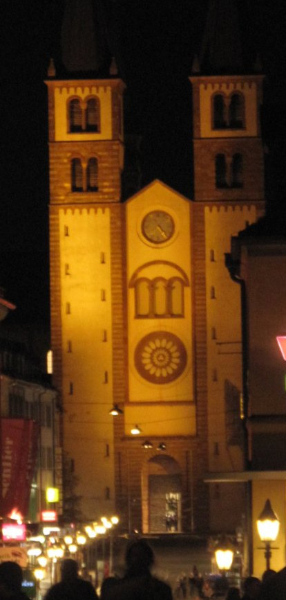 War das ein herrlicher Tag! Das Wetter hat sich gehalten und ich hab die 140 km (genau: 140,87 km in 6h 48min) locker abgespult. Es ist halt ein komfortabler Radweg. Aber der Main hat so viele schöne Städtchen, die rufen immer wieder „Verweile doch, ich bin so schön!“, doch ich war ja dem Hotel Altstadt versprochen. Jetzt sitz ich in Würzburg auf der alten Mainbrücke und meine Stimmung ist so strahlend wie die der Brückenheiligen (Franconia). Mir scheint, die ganze Stadt ist hier versammelt, um bei einem Glas Wein den lauen Abend zu feiern. Natürlich gibt es auch Live-Musik. Vorher (so zwischen fünf und sechs, als ich im Anflug war), war die ganze Stadt mit dem Rad oder joggend am Mainufer unterwegs, so dass nur noch die einheimischen Radfahrer (keine -innen, die sind rücksichtsvoller) gebrettert sind. Na ja, genau genommen waren es zwei, die zeitweise schneller als ich gefahren sind. Ich war noch kurz im Dom: Von außen schöne klare Linien, aber innen „barock dekoriert“! Mit der ganzen Schnörkelei kann ich nichts anfangen. Mein Vorschlag: Schlagt den süßlichen Stuck ab, dann wird die Kirche innen so schön wie außen!