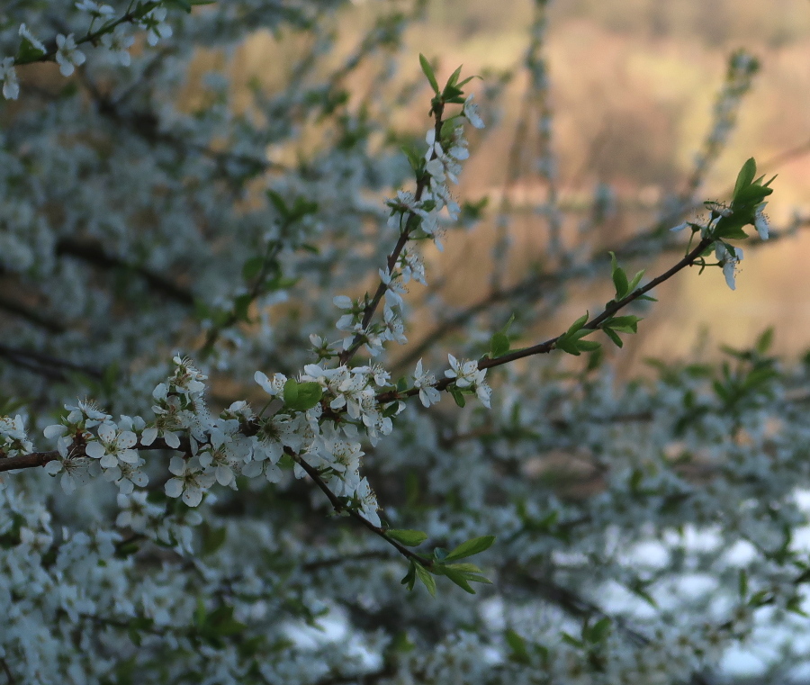 Beim Fotografieren verwöhnte mich ein blühender Busch (Winter-Heckenkirsche) mit betörendem Duft: