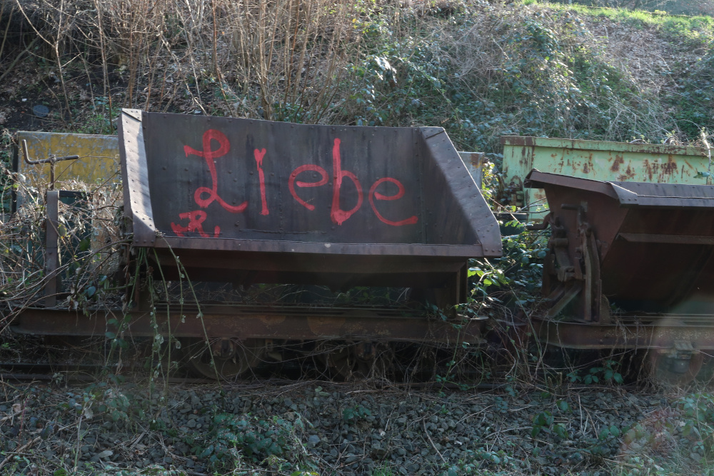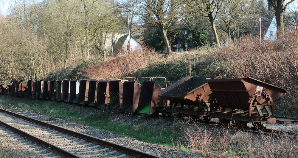 Und dann – inzwischen fuhr ich am Südufer der Ruhr – standen da alte Kipploren auf dem Abstellgleis: